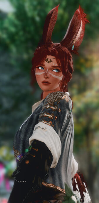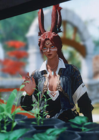 Currently, Sarina has made her home and life under new boughs, with life in Gridania providing an environment close enough to home that she has come to love. Her past has left her a pacifist, focusing soley on non-violent means to make her way through the world. Events in past years with the Garleans trying to occupy Eorzea had made her nervous however, her bow and arrows still within reach should the need arise.Her love for botany has flourished in the decades that she has resided in the Twelveswood, and she is a staple in the Botanist's Guild in Gridania. Her dealings have lead her to explore more of Eorzea as a whole and even further, though she shies away from returning to the shores of her home to this day.Even now, Sarina finds beauty in the diversity of Eorzea, a staunch contrast to what she had experienced in her younger life in the jungle. The fleeting thoughts she had back then were no indicator of what she experiences now, and she makes a point of finding the beauty in a larger, interwoven society.